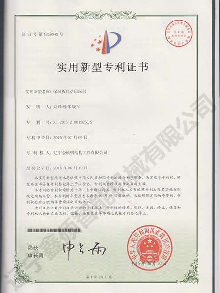 Utility model patent for automatic palletizing of thermal insulation board